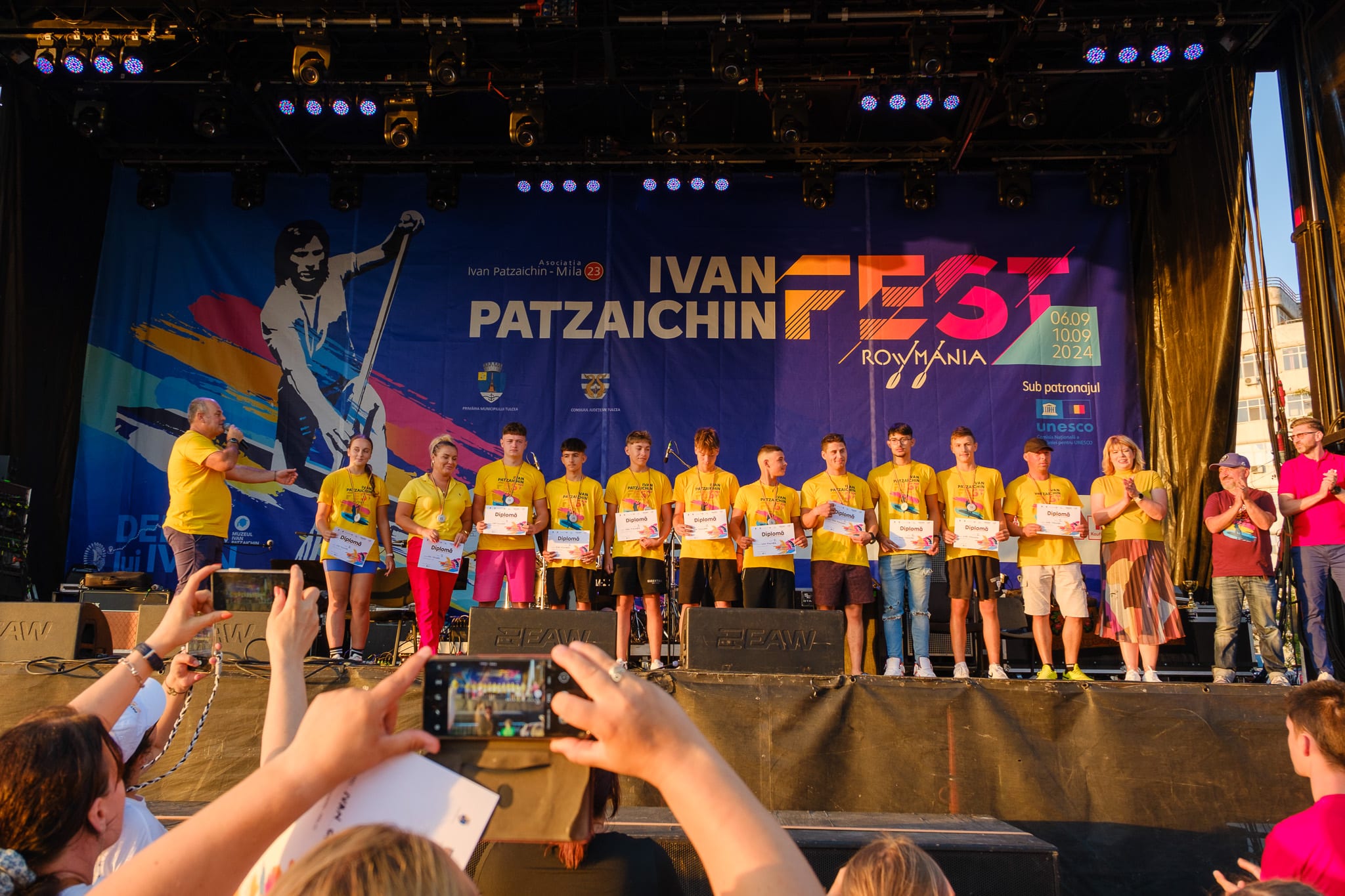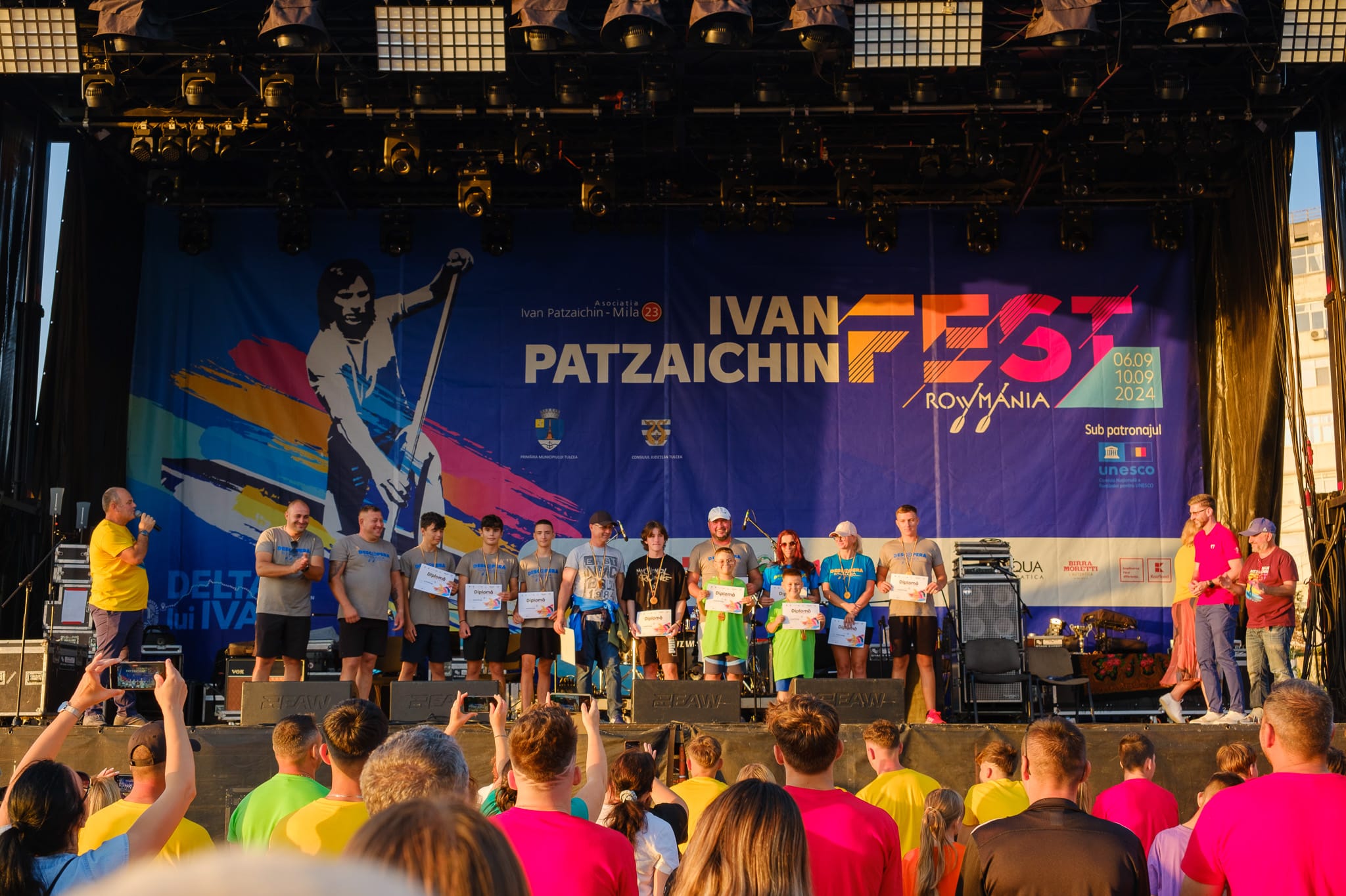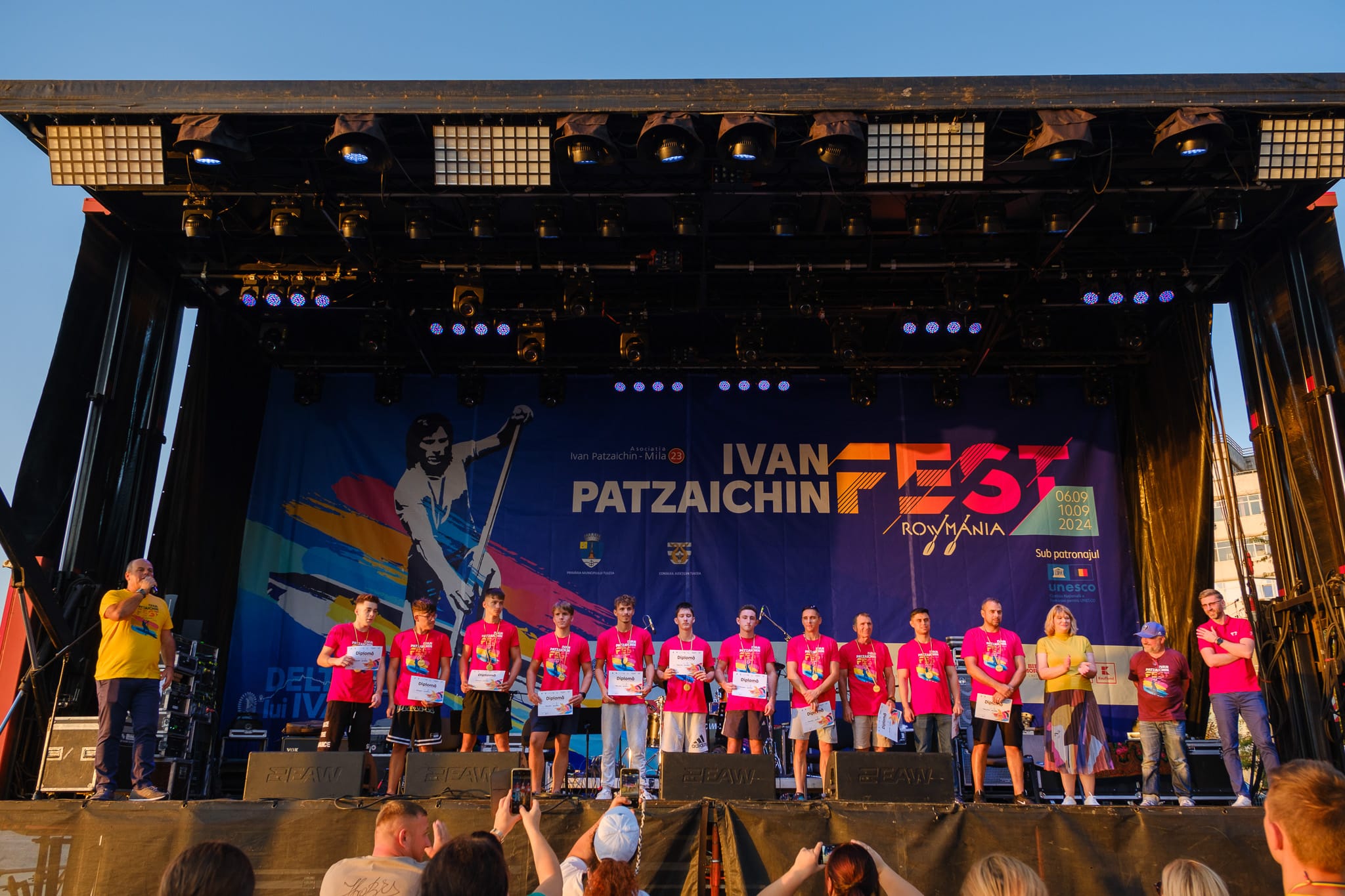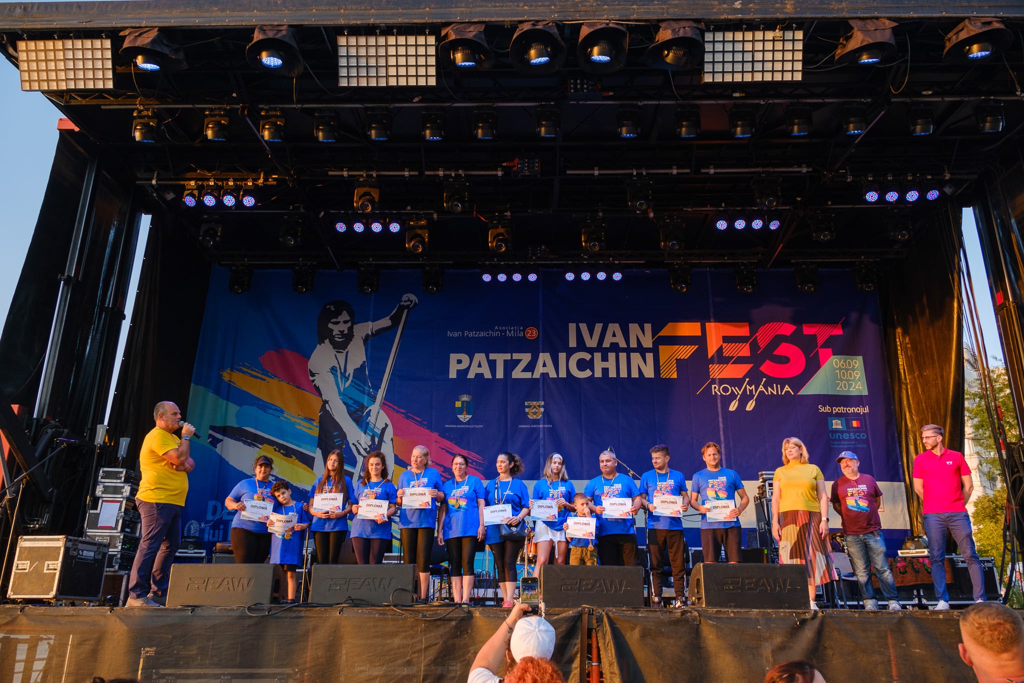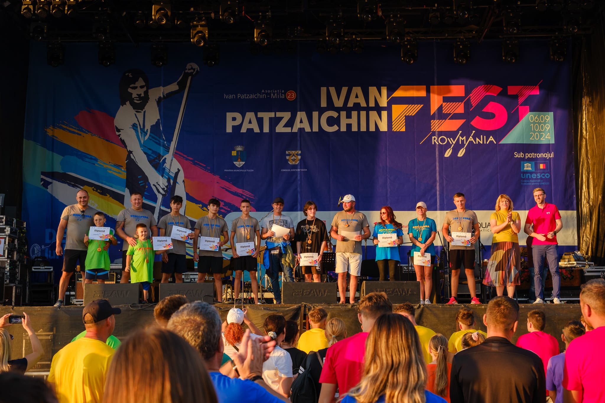 Ceremonia de premiere a competiției de vâslit în canotcă de 10+1, DescoperăRowmania, etapa Tulcea și finala națională 2024.